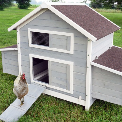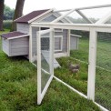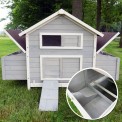 Slepice se mohou dostat ven nebo do kurníku přes rampu s posuvnými dveřmi. Kurník je vyroben z prvotřídního dřeva. Dřevo bylo natřeno moderními a ekologickými barvami.
