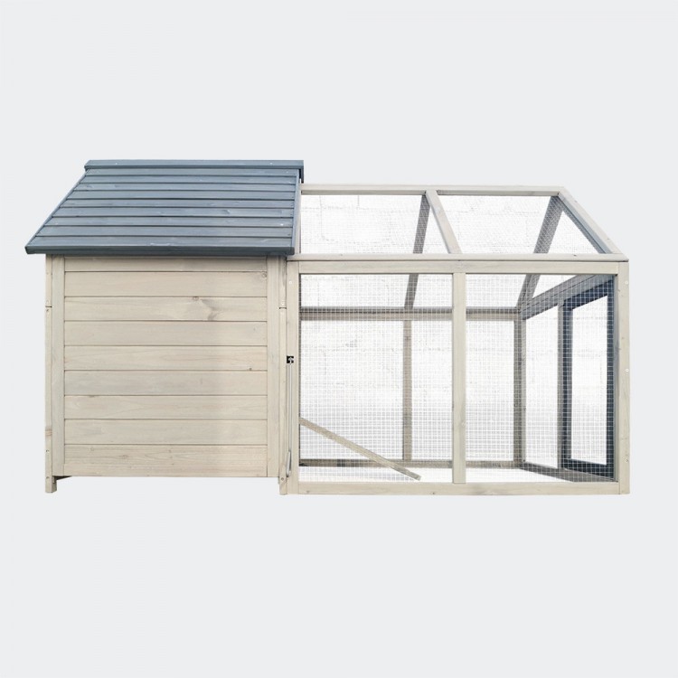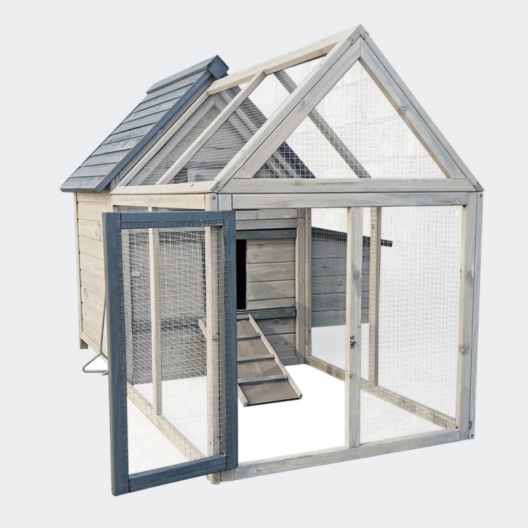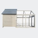 Kurník je velmi prostorný, a prostřednictvím posuvných dvířek s madlem naotevírání zvenku lze snadno oddělit výběh od vnitřních prostor.