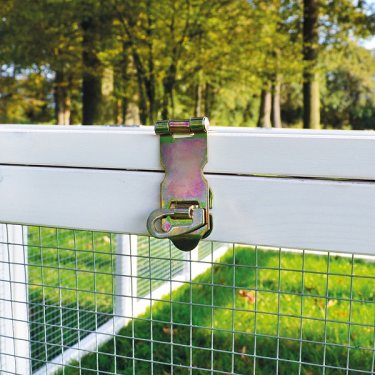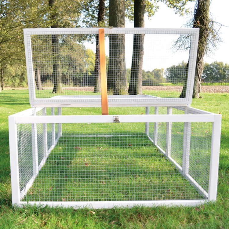 Dřevěný výběh je stabilní a špičkově zpracovaný. Vyrábíme ho ve 2 barvách - v načervenalém tónu dřeva a v bílé barvě. Barvy jsou šetrné k životnímu prostředí a zcela neškodné pro zvířata. Drát má velikost ok 1,2 x 1,2 cm a tloušťku 1,1 mm. Nabízí proto optimální ochranu, aby váš králík nemohl uprchnout.