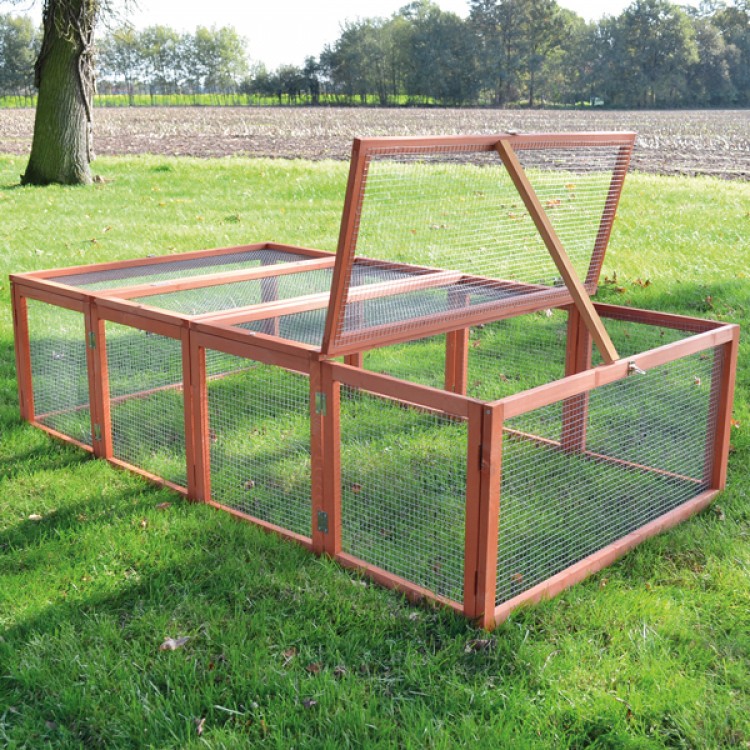Co může být hezčího, než vidět své vlastní králíky šťastně poskakovat na zahradě? Praktický výběh to umožňuje. Výběh umístěte na místě, aby umožňoval volný pohyb králíkům, morčatům nebo zajícům.