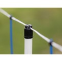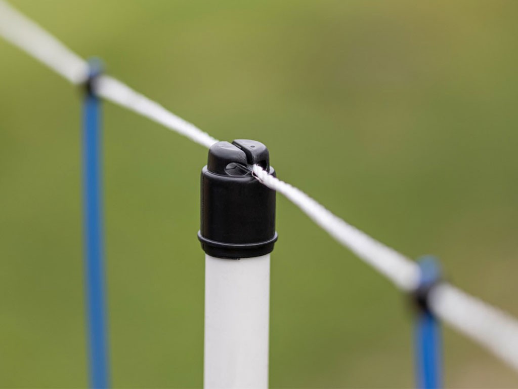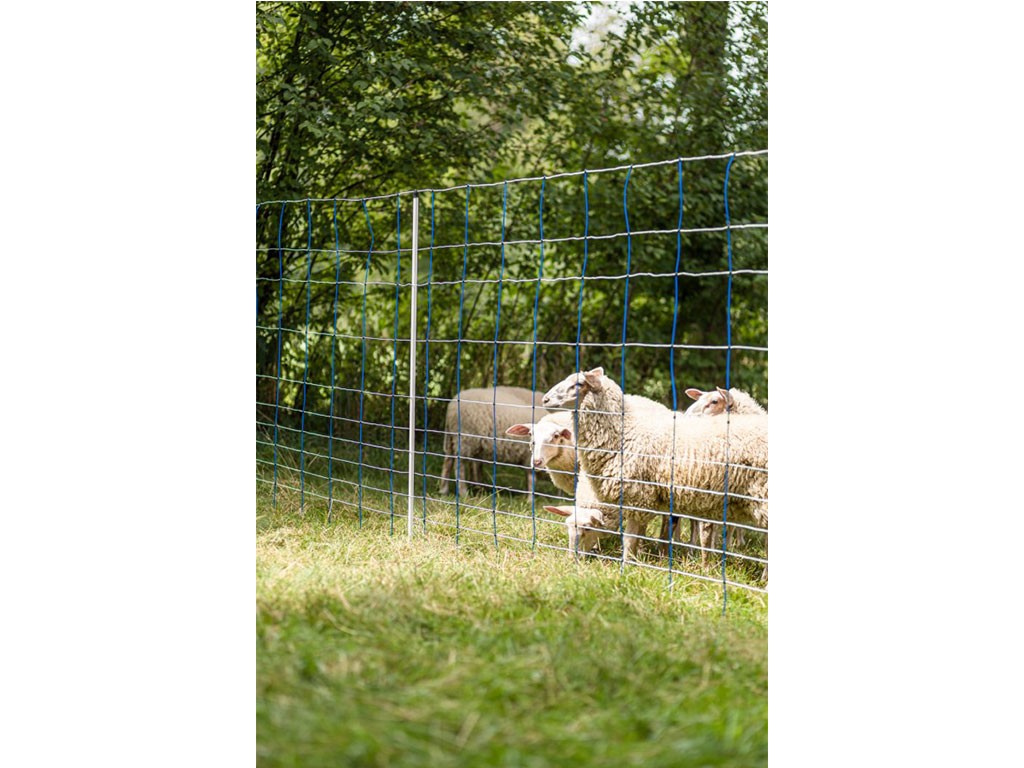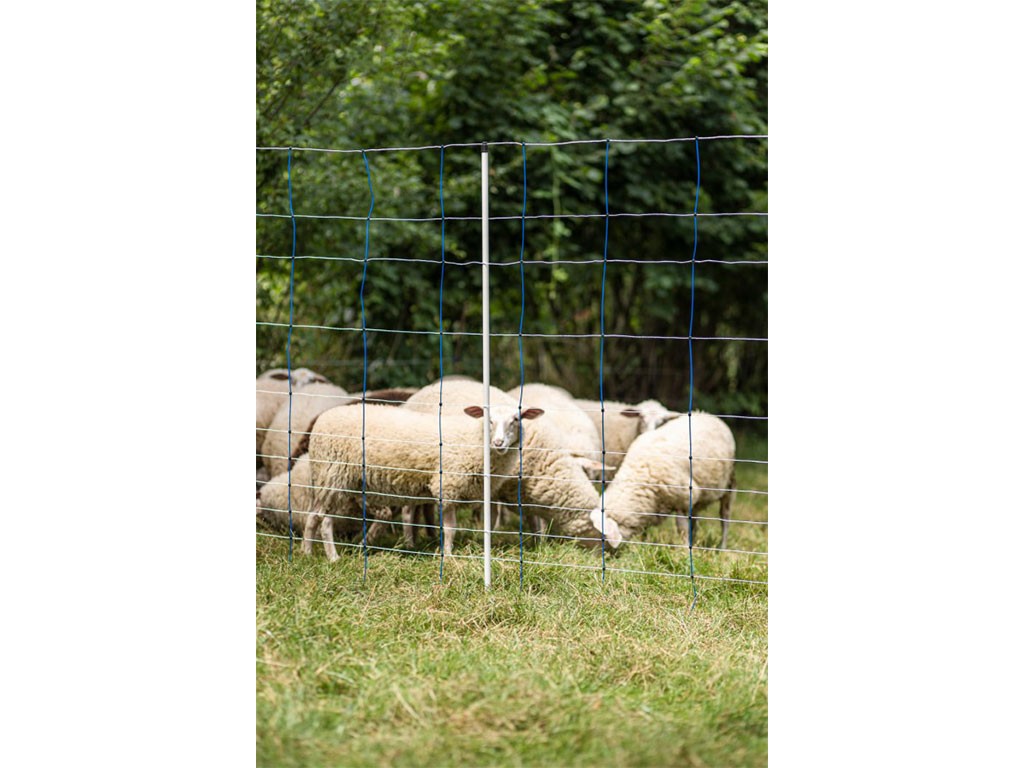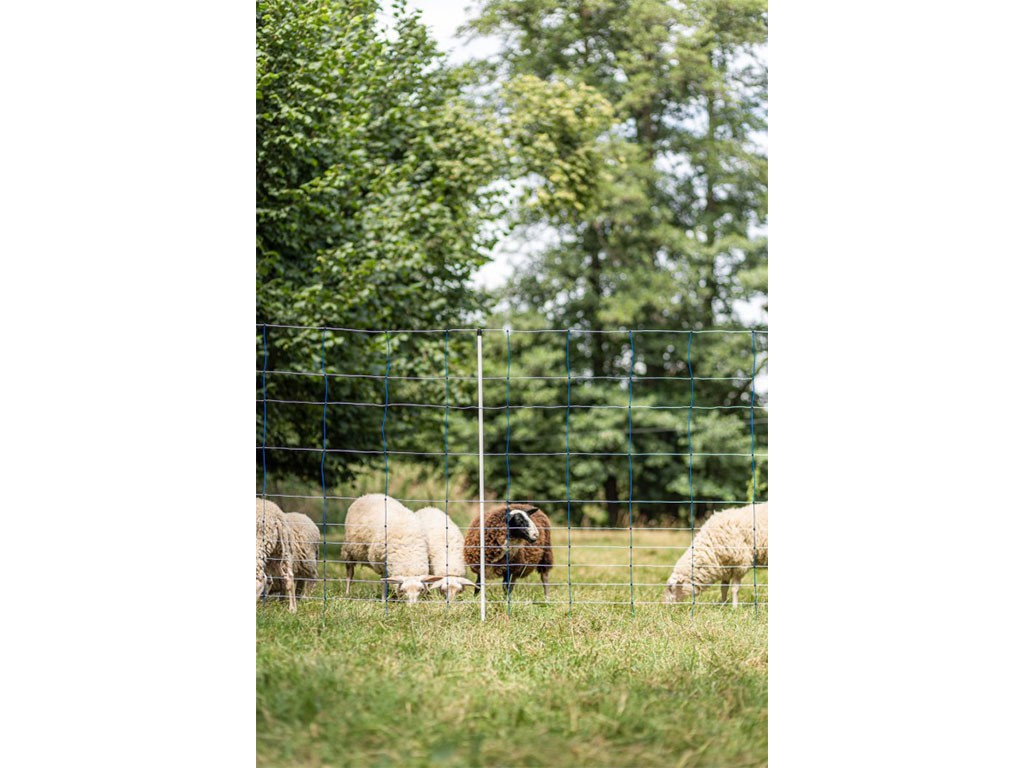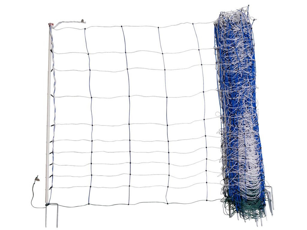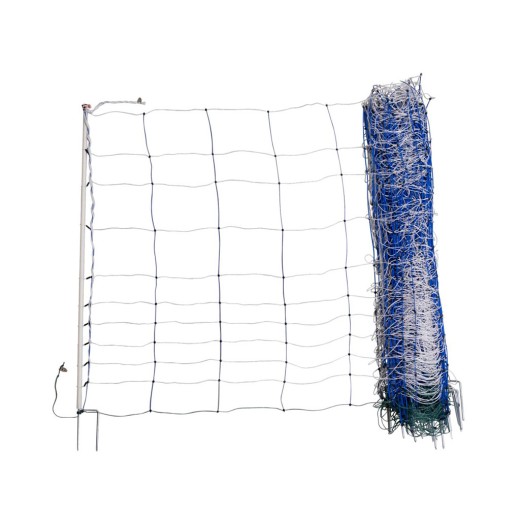 Vodivá ohradníková síť nabízí velmi pokročilé řešení pro flexibilní a spolehlivou ochranu výběhů. Díky své nadstandardní výšce 145 cm, pevné konstrukci a kvalitním materiálům je vhodná pro různorodý chov – od menších koní přes osly až po alpaky. Extra robustní sloupky s dvojitými pozinkovanými hroty zajišťují stabilitu i v členitém terénu, zatímco vodivý systém s velmi nízkým odporem s kombinací měděných a nerezových vodičů umožňuje efektivní a rovnoměrné rozvedení elektrických impulsů po celé délce sítě. Tyto mimořádně vysoké sítě se výborně hodí také pro zřizování mobilních nočních kotců, a to jak pro kontrolované přenocování zvířat, tak jako prevence proti predátorům. Síť se snadno instaluje a její přemístění zvládnete během několika minut, což oceníte zejména při rotaci pastvin. Viditelná bílomodrá barva, pevné svařené spoje a kvalitní vodivé materiály napomáhají dlouhodobému a bezpečnému provozu. Bez složité montáže a s vysokou variabilitou využití představuje tato síť praktickou volbu pro každého, kdo hledá odolné a funkční řešení ochrany zvířat v terénu. Síť lze snadno připojit k elektrickému zdroji a vytvořit tak plnohodnotný elektrický ohradník.