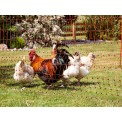 Ohradníková vodivá síť pro drůbež, pro konstrukci elektrického ohradníku, pro slepice, husy, krůty a další, 11 vodorovných vodičů, zesílený horní pramen, 15 pevných plastových tyček, menší velikost ok ve spodní části, výška 106 cm a délka 50 m.