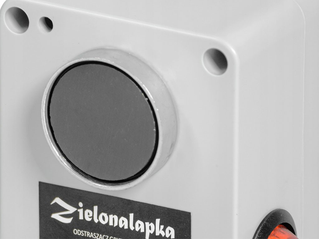 Ultrazvukový odpuzovač zvěře, bezpečný pro člověka i domácí zvířata, vhodný k plašení kun a hlodavců, ve vnitřních i venkovních prostorech, s odolným vodotěsným krytem, k uchycení přes magnetický držák, s rozsahem tónu v úhlu až 180°, s automatickou změnou kmitočtu, s dosahem až 1500 m2, s napájením přes 4xAA baterie, s 1x 50mm membránovým reproduktorem, s rozměry 85x85x55mm.